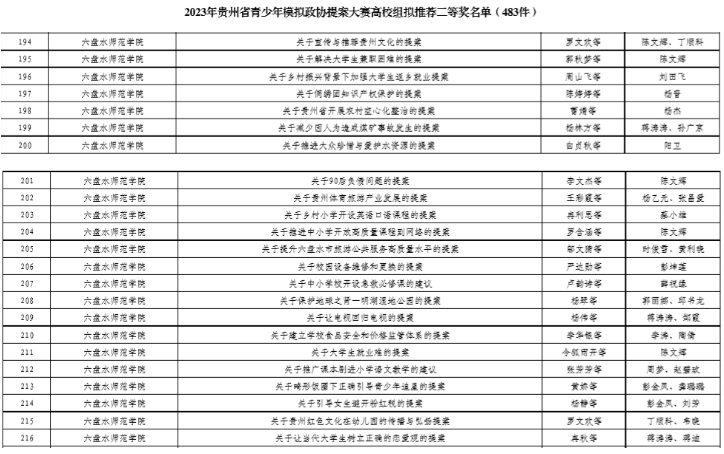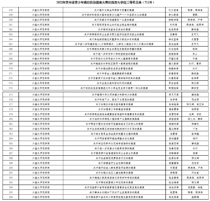 近日,团省委和省学联共同下发《2023年贵州省青少年模拟政协提案大赛结果公示》,“bat365在线中国登录入口团委”拟被评为“优秀组织单位”;同时,经过前期紧张的备赛和激烈的角逐,最终bat36578项作品进入获奖公示,其中拟获一等奖16项、二等奖23项、三等奖39项,成绩喜人,实现了bat365模拟政协提案大赛新的突破。