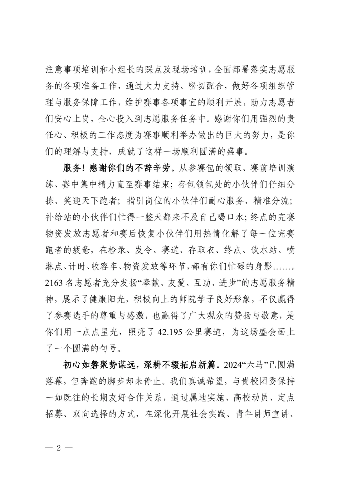 一封来自六盘水马拉松执委会的感谢信,让我们一起为六师志愿者点赞