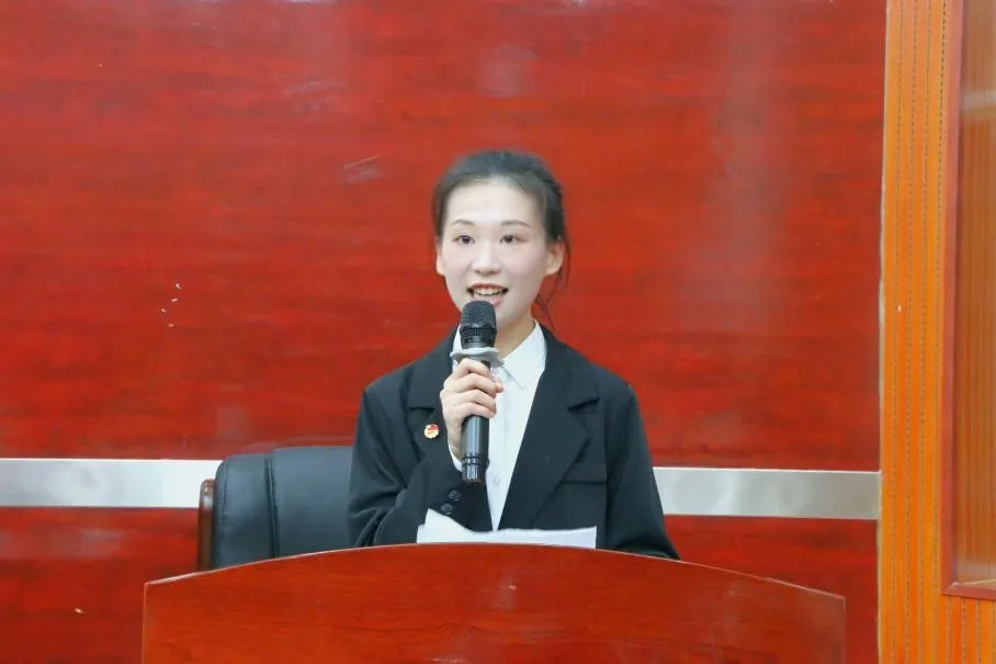 杨思潼代表新生发言。她表示成为团学组织的新成员,既是各位老师和学长学姐对自身能力的认可,同时也是一种考验,她将更加关注自身能力的培养,以热情饱满的状态服务同学 。