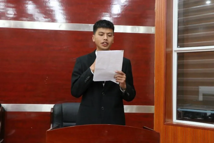 李江超代表上一届学生干部上台进行发言。他向悉心培育自己的校团委领导、老师表达了诚挚的感谢,向新成员们表示热烈欢迎和诚挚祝福,分享了他在团学组织的工作经验。希望新成员敢于追逐梦想,勇于实践,团结协作,不忘初心。