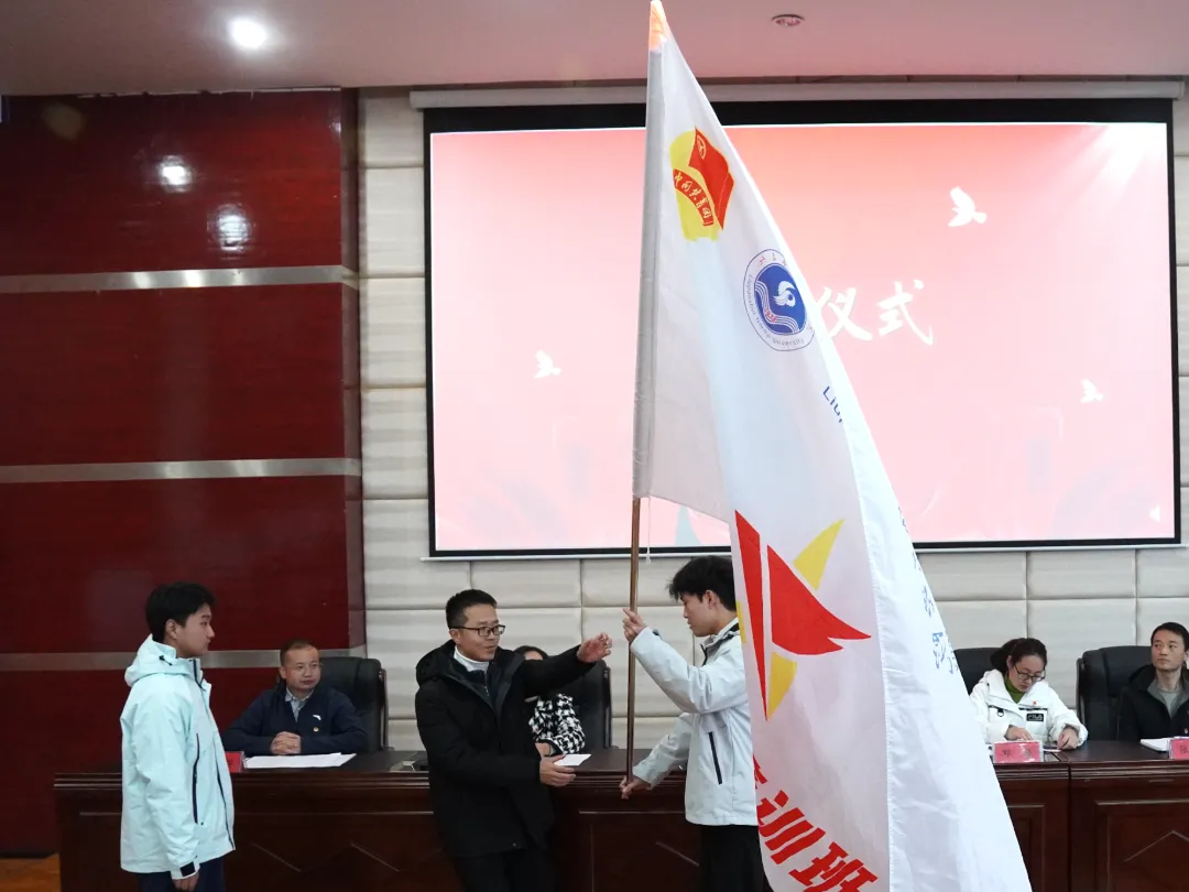 薪火相传,旗帜飘扬。在庄重的授旗环节,第十七期学员代表将象征着责任与使命的“青马工程”旗帜传递至第十八期学员代表手中。校党委常委、副校长牛伟完成授旗并勉励新一期学员赓续青马精神,勇担时代重任。