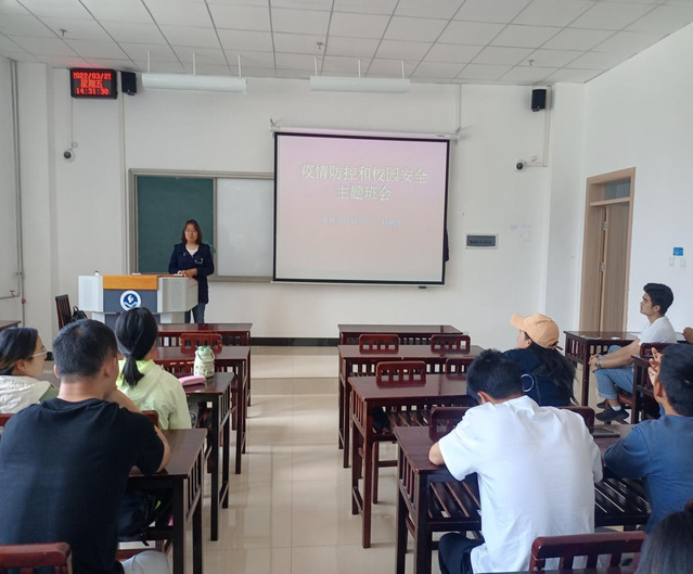 为了进一步贯彻落实疫情防控工作,抓好我院疫情防控工作,有效防范安全事故发生,3月25日下午,我院组织2019级学生在奥学楼106召开疫情防控教育主题班会。会议由辅导员杨树荣支持,全体学生参加。