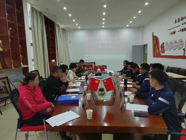 5月25日上午,我院在风雨操场204举行与贵州追光者俱乐部有限公司的签约仪式。贵州追光者俱乐部有限公司领导和体育学院班子成员及相关科室负责人参加。会议由体院学院党委副书记方敬秋主持。