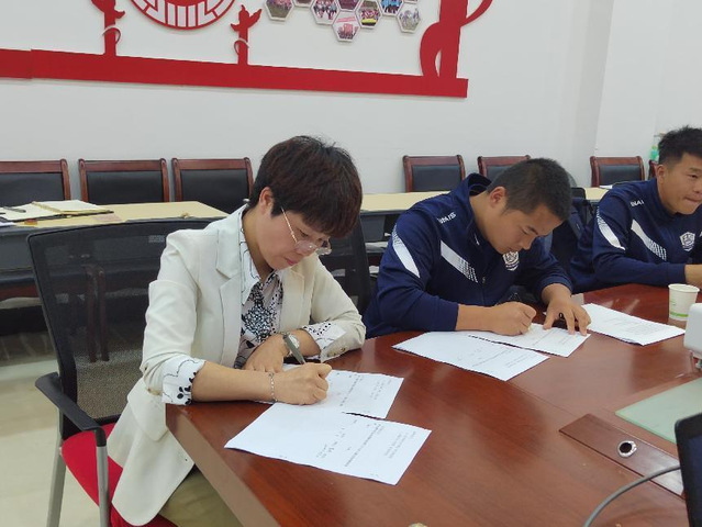会上,贵州追光者俱乐部有限公司董事长张泰源和体院体育学院院长莫琰就签约背景以及公司、学院情况作了介绍,讨论了协会提供的就业岗位及我院学生技能考教练员证等情况,并就我院如何培养综合型体育人才、一级社会体育指导员培训等相关情况进行了深入交流。最后,双方就合作协议内容达成一致并进行现场签约。