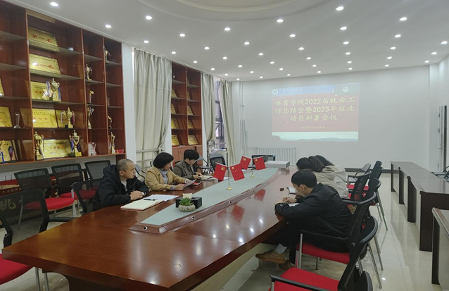 11月16日,体育学院2022届毕业生就业工作总结会暨2023届毕业生就业工作部署会议在风雨操场204召开。学院党委书记王世平、院长莫琰,党委副书记谷小伟,团委(学生科)、辅导员、班主任以及2019级全体同学参加,会议由王世平主持,会议采用线上线下相结合的方式召开。