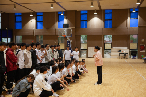 施艺玲就教育实习会操比赛内容进行了说明,包括会操要求,考核内容、成绩评定与记分方法和流程,并宣布比赛开始。