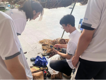 杨校长还向调研团队讲解了炸龙的制作流程,并展示了“龙”的制作过程以及所需要的工具,团队成员亲身体验了炸龙的工艺制作。那看似简单的扎竹条、糊纸皮,实则需要极大的耐心和技巧。当我终于完成一小部分时,心中充满了成就感。