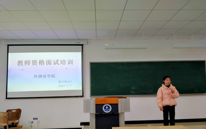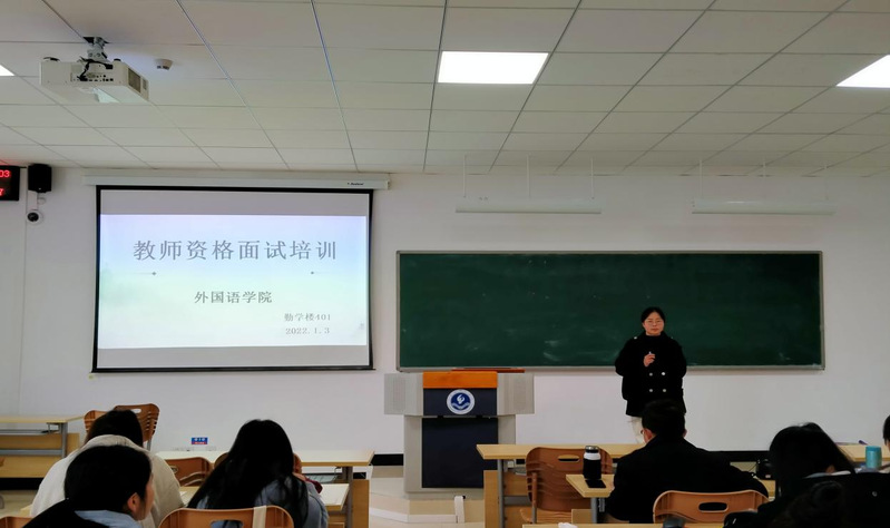 为了帮助英语专业师范生能够全面了解教师资格证面试流程及应考技巧,提高考试通过率,1月3日上午,外国语学院举办了教师资格考试面试备考培训会,培训会由辅导员张中梅主持,外国语学院副院长吴得禄主讲,英语2018级和2019级两个年级共计74名学生参加了本次专题培训。