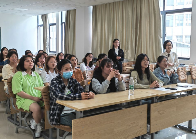活动初始,留学生们开始作自我介绍,同学们不时用掌声表示热烈的欢迎。紧接着由中方学生刘雅宁和樊瑶同学用中英结合的方式,向大家介绍了六盘水的三线建设文化、凉爽气候和特色小吃,并分享了当地苗族盛装表演的视频,最后用图片形式展示了校园美景,并表达了希望以后能有与留学生互相交流学习的机会。伴随着优美的旋律,同学们开始齐唱“朋友”,整个走廊里回荡着嘹亮的歌声。最后在张老师的带领下,同学们与留学生之间进行了友好的互动,教室充满了一片欢声笑语。