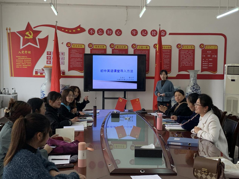 活动中,杨淼首先对本次教研活动进行介绍,并对老师们的到来表示欢迎。之后黎志芹向各位老师和同学讲授了《初中英语课堂导入方法》的详细实施过程。授课结束后,各位老师对《初中英语课堂导入方法》分享了心得和感受。