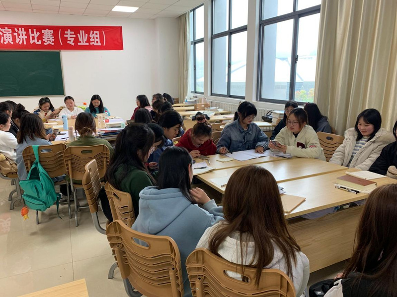 图为2020级学生分组讨论四种教学设计撰写
