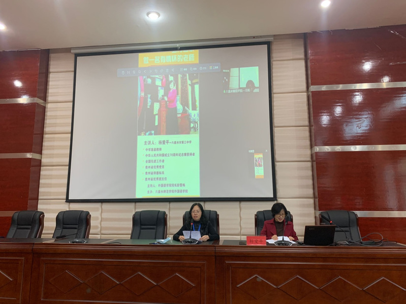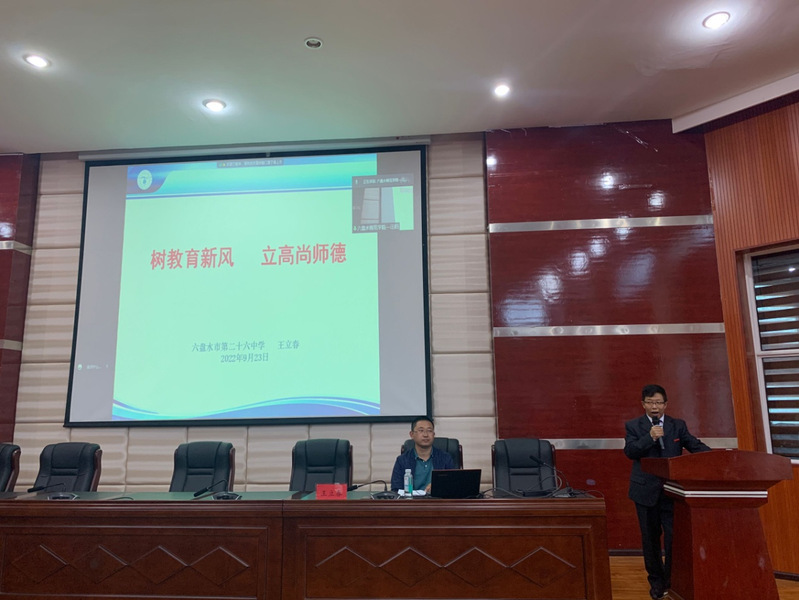 为加强师范生的师德养成教育,涵养教育情怀,落实立德树人根本任务,9月23日上午,外国语学院邀请了六盘水市第二十六中学校长王立春和六盘水市第三中学高级教师杨爱平在知行讲堂(博学楼117)开展了以“树教育新风 立高尚师德”和“岁月如歌做一名有情怀的老师”为主题的“师德养成暨教育情怀”讲座。讲座分别由外国语学院院长彭雪梅、副院长吴得禄主持,外国语学院全体教师、英语2020和2021级全体同学参加了此次讲座。