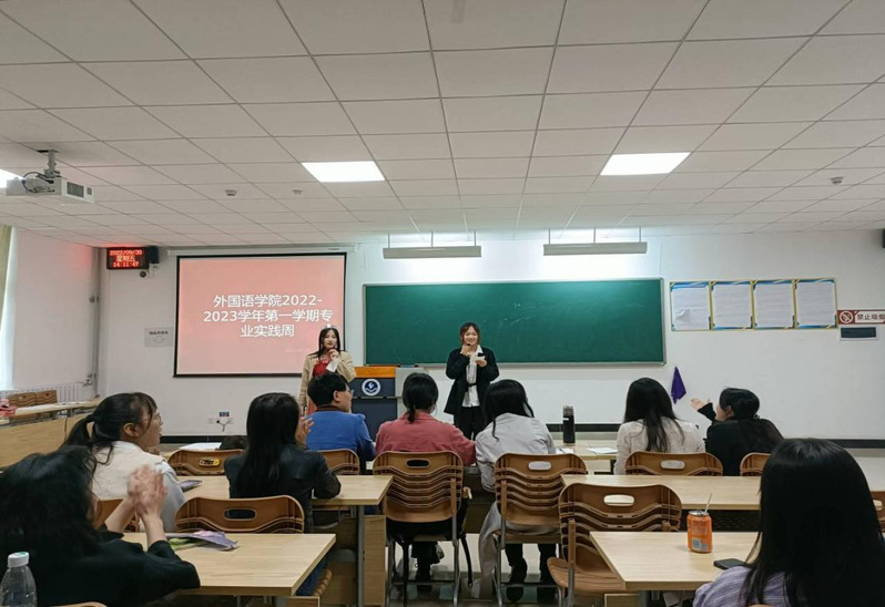 为落实好“专师融合、实践强能”的人才培养模式,外国语学院于本学期第六周开展了2020级英语戏剧片段表演专业实践。9月30日下午,英语戏剧表演在勤学楼307举行,2020级学生胡兴敏和李加维担任主持人,2020级全体同学参加了此次活动。