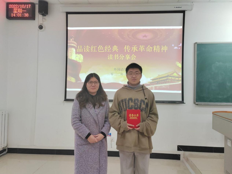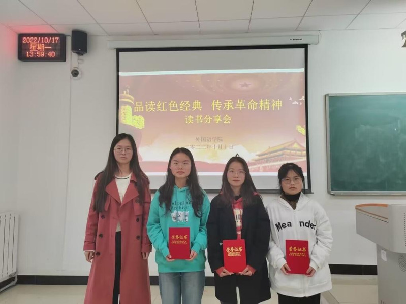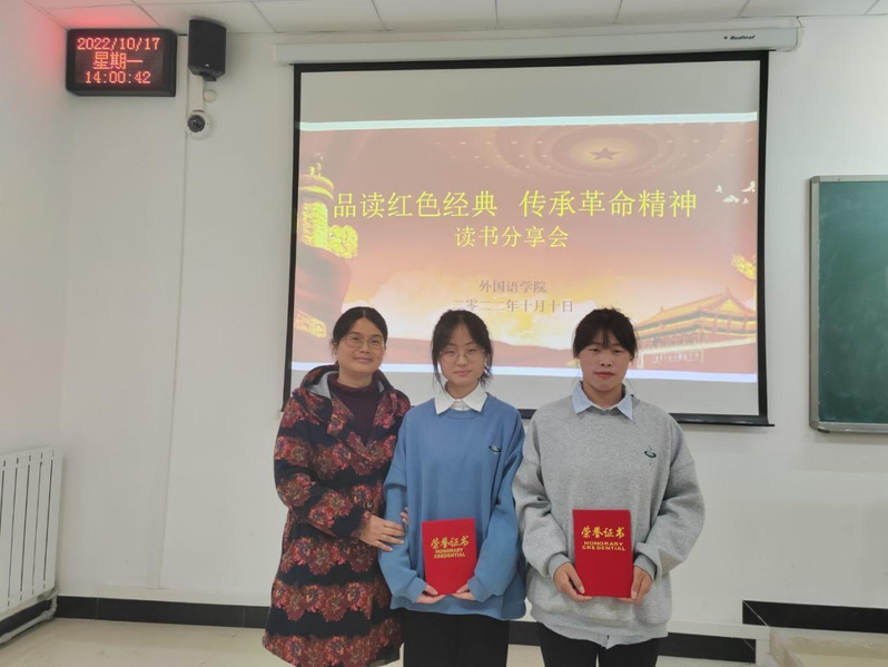 缅怀过去,传承未来,透过历史的年轮,我们从红色经典中了解到历史故事,体会到革命英雄的大义凛然、不畏艰险、艰苦奋斗的革命精神。英语专业2011、2022级的同学们用朴实生动的语言,讲述着一本本红色经典书籍中的故事,品读着革命先烈和中国共产党光辉的历史。通过评比,学院组织评选了一等奖1名,二等奖2名、三等奖3名,参与活动的评委老师分别为他们颁发了获奖证书。