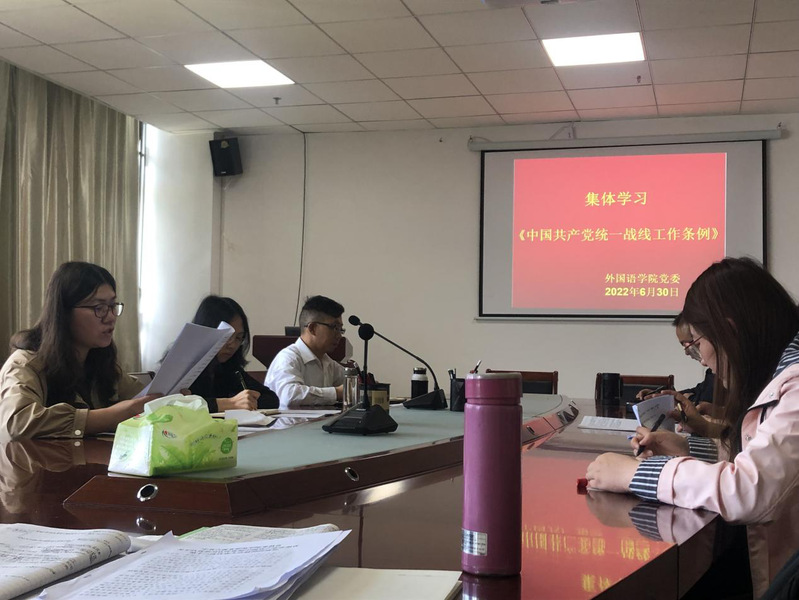 6月30日下午14时30分,学院在奥学楼710会议室专题学习《中国共产党统一战线工作条例》,会议由党委书记谭兰主持,学院副科级以上干部和支部书记参加。