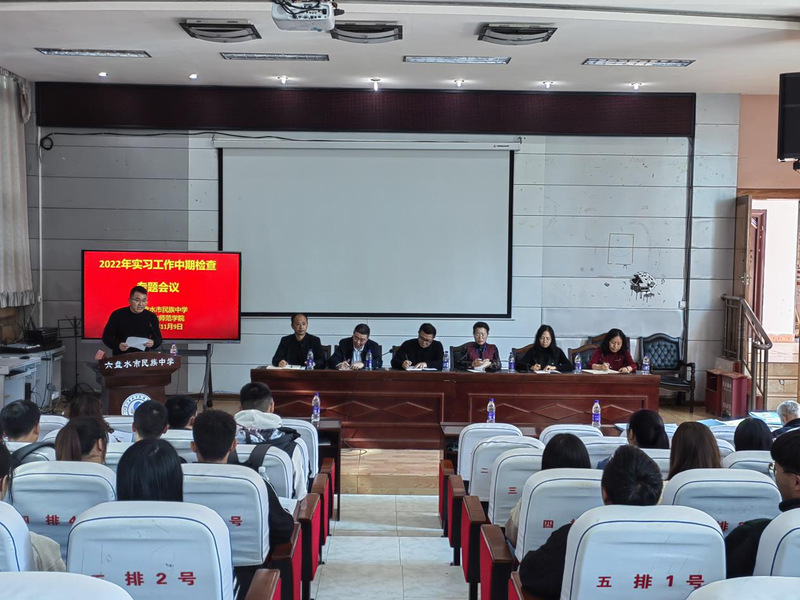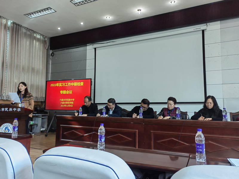 11月9日14:30-17:00,由外国语学院院长彭雪梅、马克思主义学院院长伍友琴、艺术学院院长崔友昌、体育学院副院长刘朝明、化学与材料工程学院副书记王毅红等组成的检查组赴六盘水市民族中学开展教育实习中期检查。六盘水市民族中学副校长何兴贵,教务处主任杨龙、各学科实习指导教师以及实习生出席。