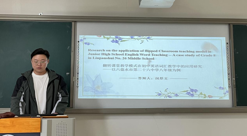 首先,答辩同学借助多媒体进行自我陈述。其次,答辩老师们针对学生论文中存在的问题提问学生2-3个问题,以了解学生论文写作的开展情况,检查学生的论文撰写进程。答辩老师们主要围绕论文框架的合理性、实验设计的可行性、数据分析的有效性、策略的实用性等方面提问,与学生共同探讨论文中存在的问题及提出修改意见。