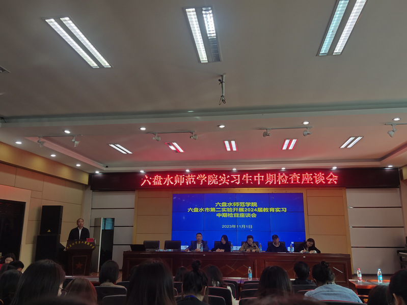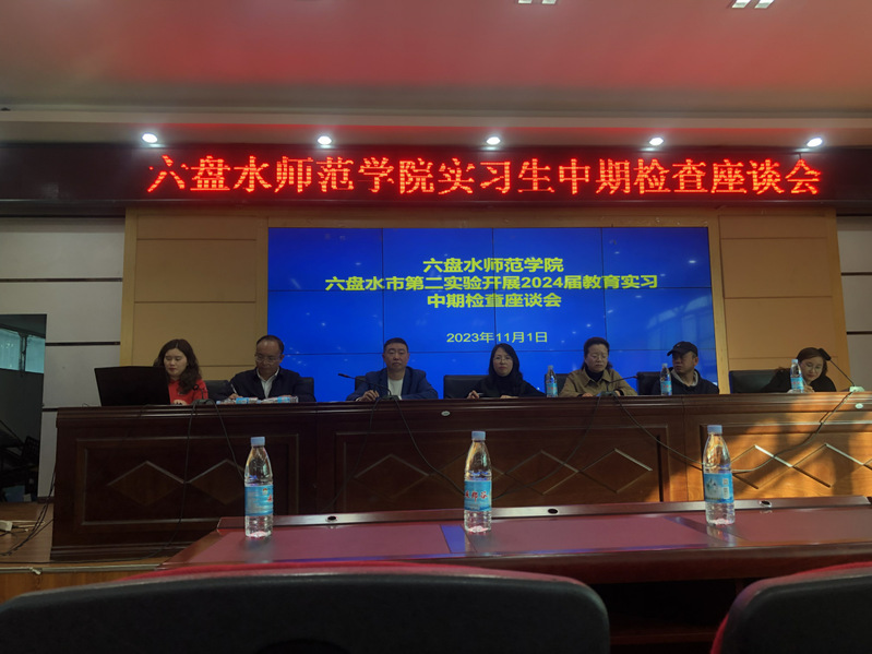 11月1日下午,bat365在线中国登录入口教育实习检查组赴六盘水市第二实验中学开展2024届教育实习中期检查。市第二实验中学副校长周金华、外国语学院院长彭雪梅、马克思主义学院院长伍友琴、艺术学院院长崔有昌、体育学院副书记谷小伟及副院长常丽娟、经管学院教师张勇荣、教务处张艳萍、实习带队教师蔡晓颖、市第二实验中学各学科指导教师代表、各专业实习生等参加了会议,会议由教务处主任李玮主持。