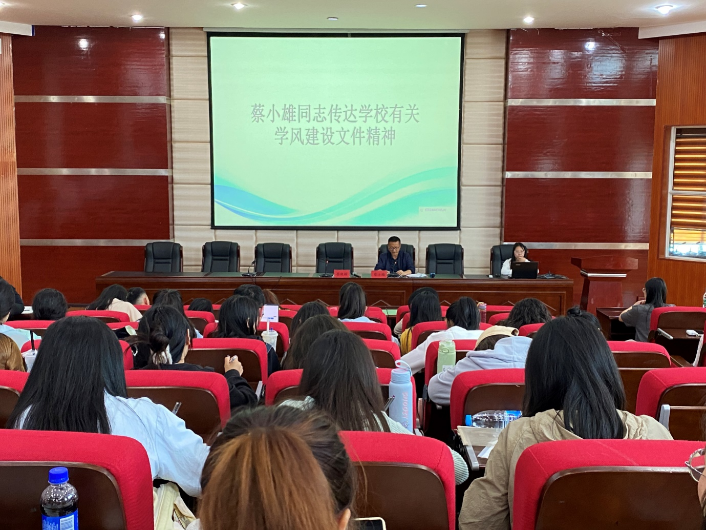 为全面贯彻党的教育方针,落实立德树人根本任务,加强外国语学院学风建设,提高人才培养质量。5月21日,外国语学院在学校博学楼知行讲堂召开外国语学院学风建设暨2025年考研动员大会。外国语学院副院长蔡晓颖(主持工作)、党委副书记蔡小雄、各科室负责人、辅导员、班主任等出席会议。会议由蔡小雄主持。