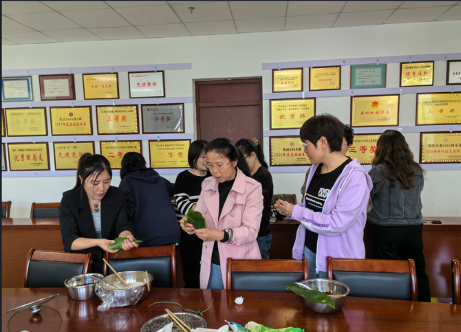 活动中,支部党员和工会会员们认真清洗着新鲜碧绿的粽叶,围站一起学习交流着包粽子的技巧,老同志手把手教授年轻同志叠粽叶、裹漏斗、填糯米、放馅料、捆棉线,大家忙得不亦乐乎。一会儿工夫,粽叶、糯米、馅料就变成了一个个诱人的粽子,大家一边畅谈端午习俗,一边唠着欢心事,现场洋溢着欢乐的气氛。包好粽子后,党支部围绕“端午”和中国传统文化知识开展了知识竞赛、猜谜语等活动,老师们在活动中学习了屈原名句等诗篇,大家边品诗边品尝自己亲手包的粽子,再一次感悟了中华传统文化故事的道理和深意。