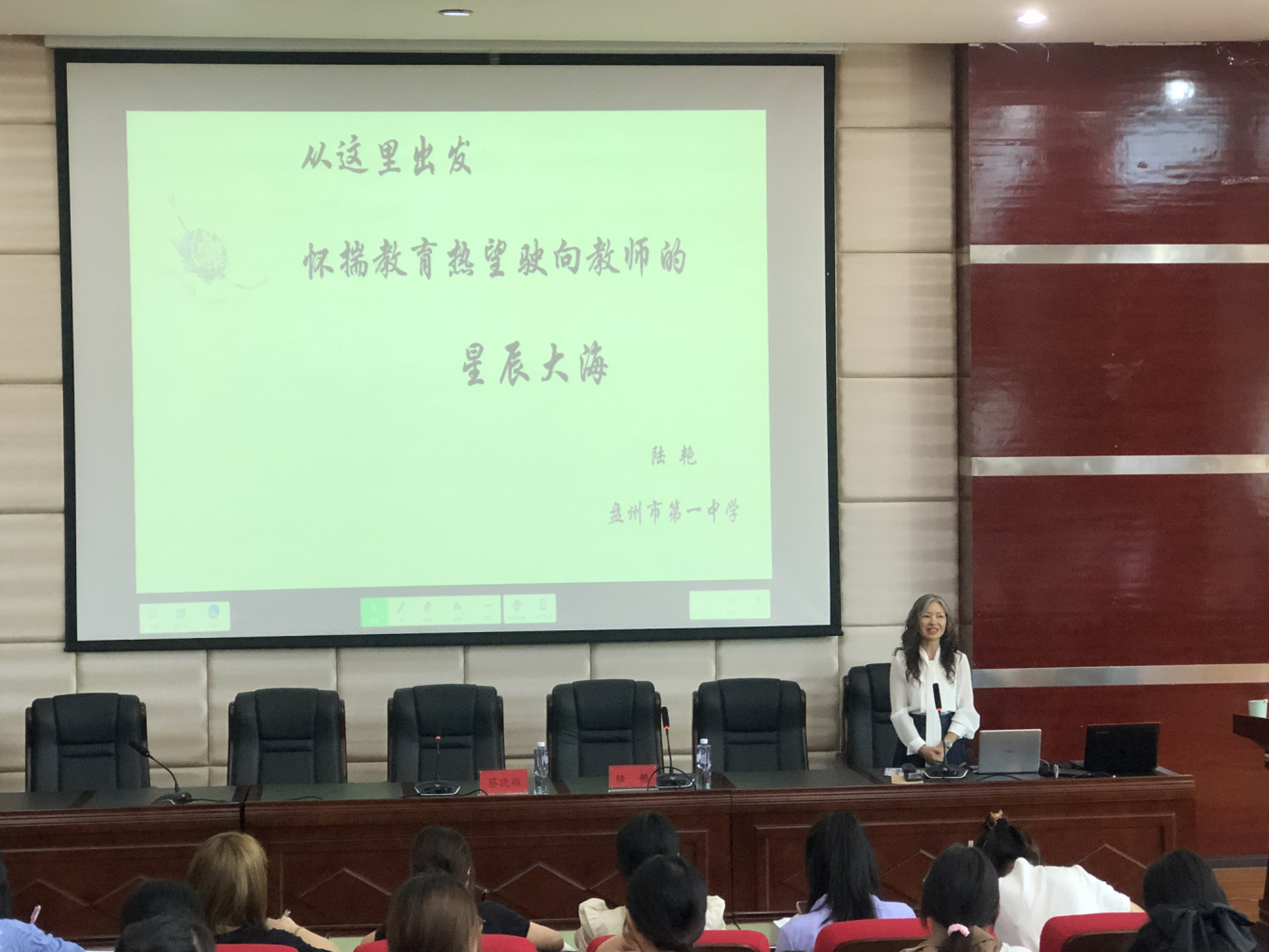 首先,陆艳老师主讲的《从这里出发,怀揣教育热望驶向教师的星辰大海》生动形象地展现了一个英语教师的育人风采,她用自己的言传身教,传递着对教育事业的无限热爱和对学生的深切关怀,她充满智慧与温情的话语让现场师范生深受感动。