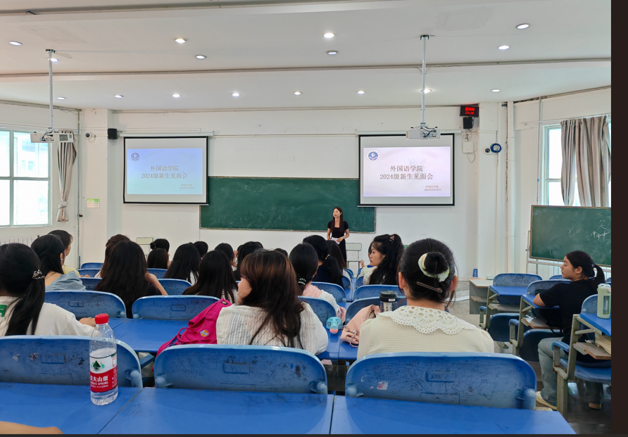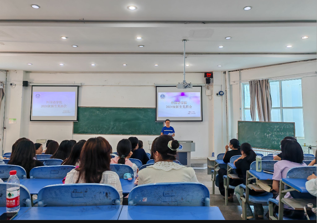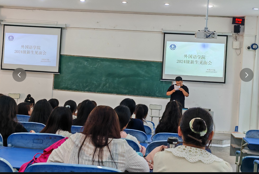 为了更好地帮助2024级新同学快速适应大学生活,做好大学职业生涯规划。8月29日下午,外国语学院在博学楼309阶梯教室举行了2024级新生见面会。外国语学院党委书记谭兰,党委副书记、纪委书记蔡小雄,学生科(团委)科长(书记)童飞云,2024级辅导员张中梅、周芳,2024级新生班主任周良睿、赵彤彤、范陶参加见面会。见面会由学院学生会学习部部长陆薛芳同学主持。
