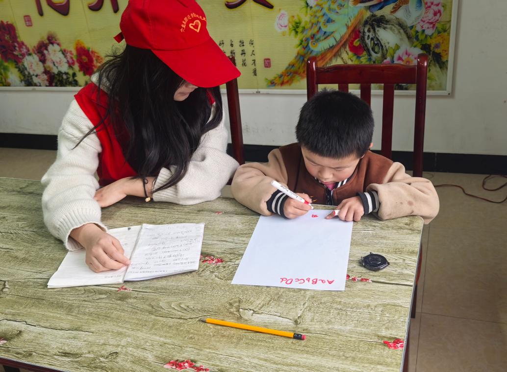 (志愿者对小朋友进行一对一教学)