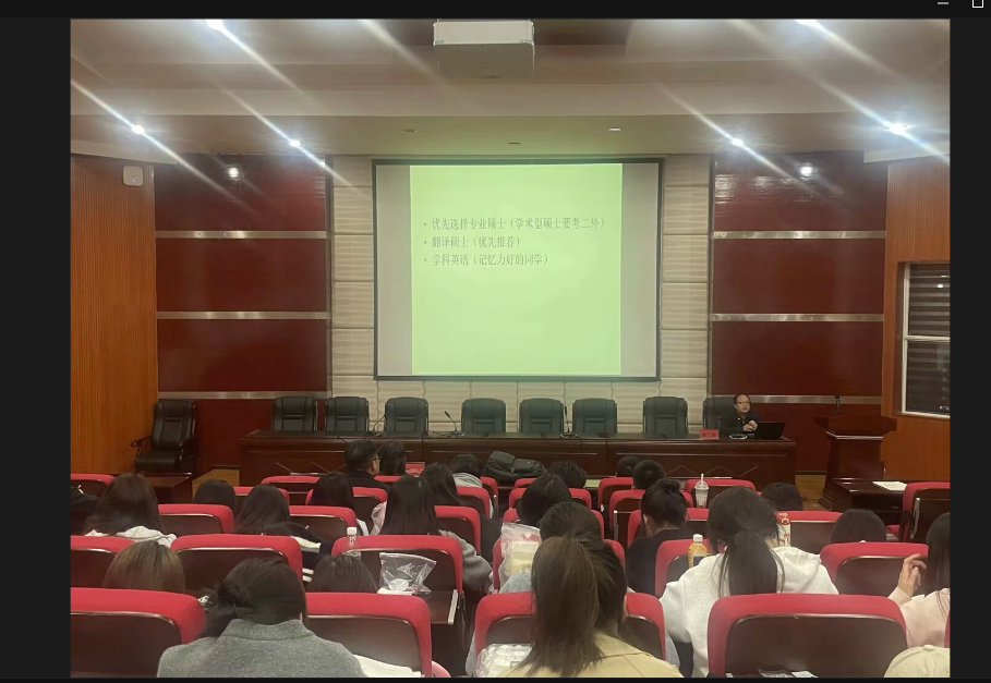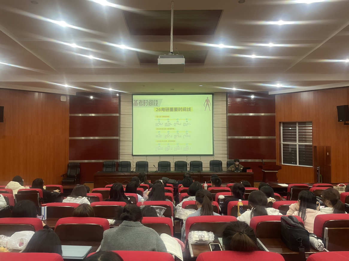 4月28日,学院在博学楼知行讲堂举办2025年考研经验分享会暨考研辅导讲座,学院党委书记谭兰、学生科(团委)科长(书记)童飞云、辅导员张中梅、周芳以及学院全体同学参加会议。