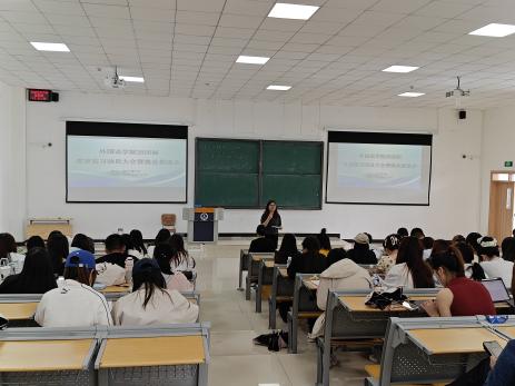 首先,英语系副主任林妮就教育实习任务和要求进行了专题讲解。她从角色认知与价值实践、成长与收获以及前期准备三个方面进行了系统解读,要求同学们假期里坚持个人师范生技能的训练工作,下学期开学首周内顺利完成个人实习试教工作。希望全体同学提前做好心理准备,以饱满的状态迎接角色转变,将理论与实践相结合,以积极态度应对困难与挑战,在反思中持续精进教学技能与职业素养,实现教学与技能的双重提升。