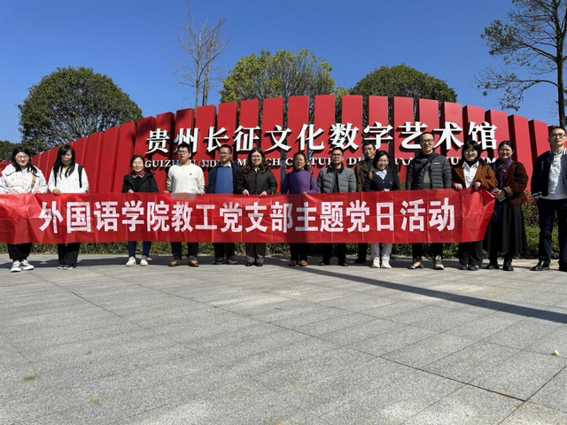 为深入贯彻落实《党史学习教育工作条例》,从党的历史中汲取智慧和力量。11月15日,外国语学院教工党支部、学生党支部联合前往贵州长征文化数字艺术馆开展“数字赋能忆长征,红飘飞扬砺初心”主题党日活动。