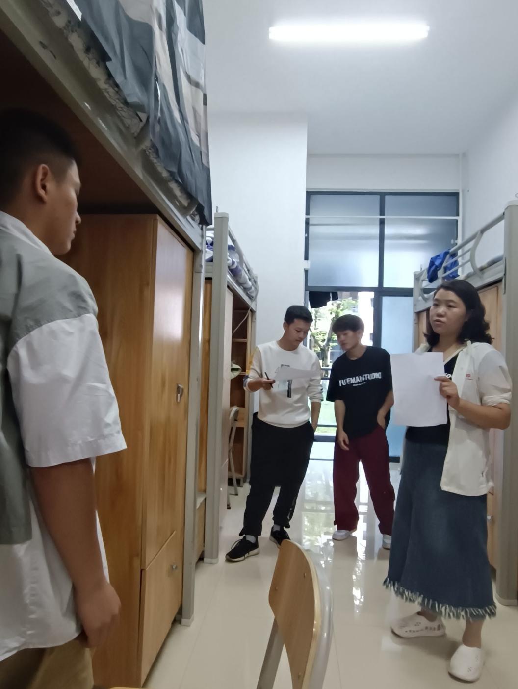 新学期伊始为督促同学们自觉维护干净、舒适、整洁、卫生、安全文明的住宿环境,营造身心健康的生活氛围,提高学生安全意识,815日,学院开展2023-2024学期第次查寝工作。