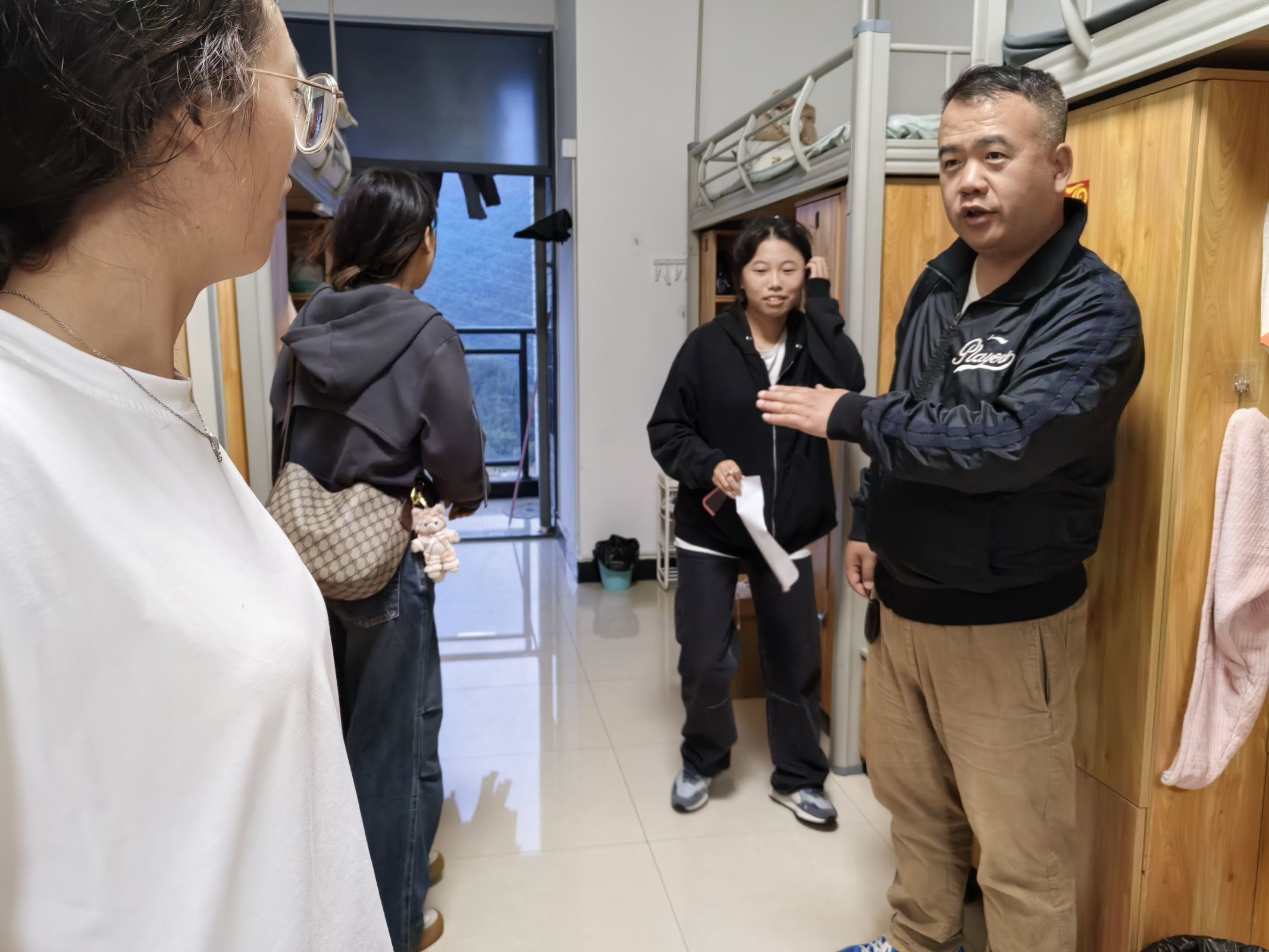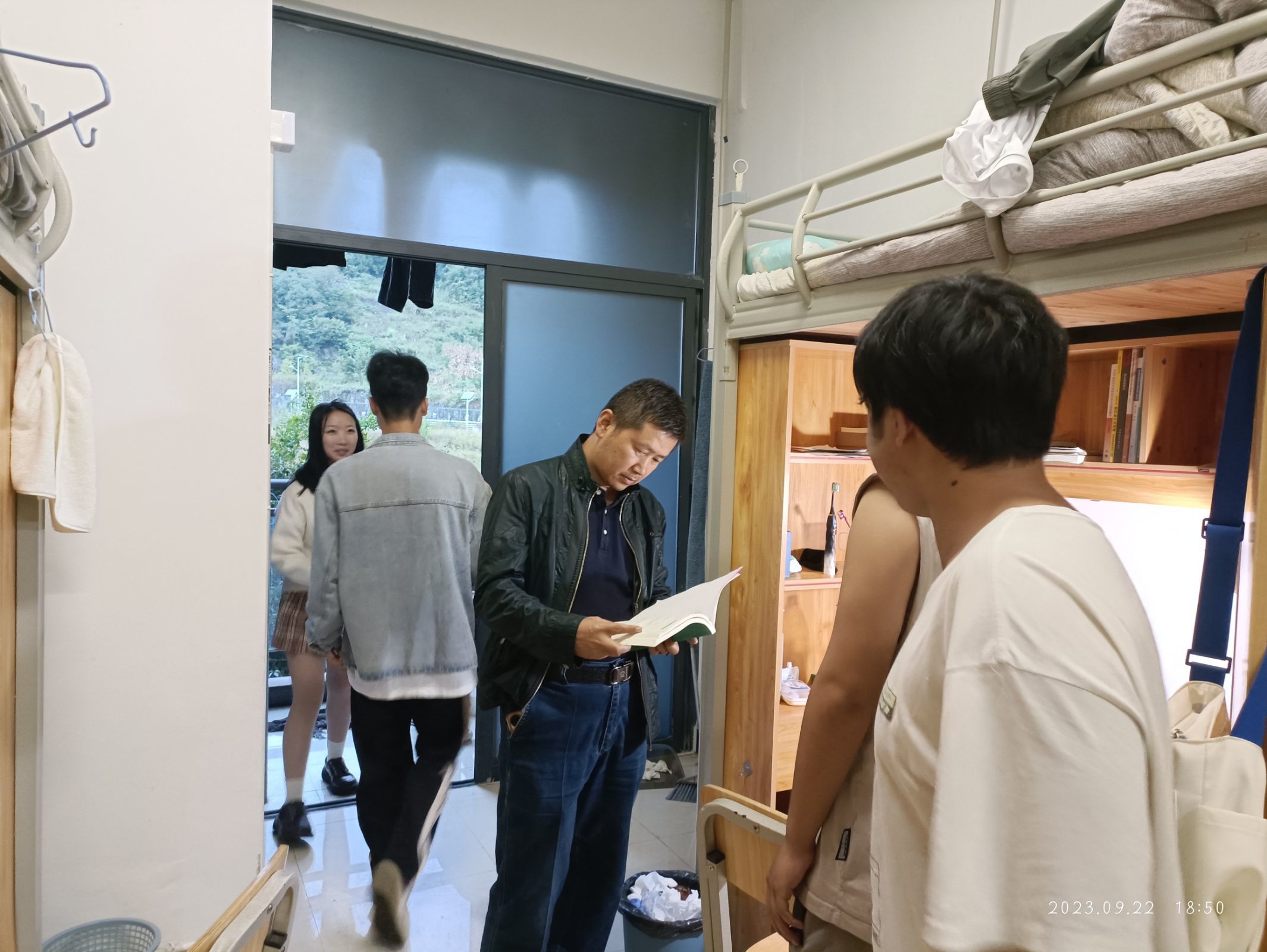 在检查过程中,全体成员认真负责的对所有寝室进行了检查和评分,学院领导和老师们和学生交谈,了解学生学习生活情况,给学生鼓励和关心。
