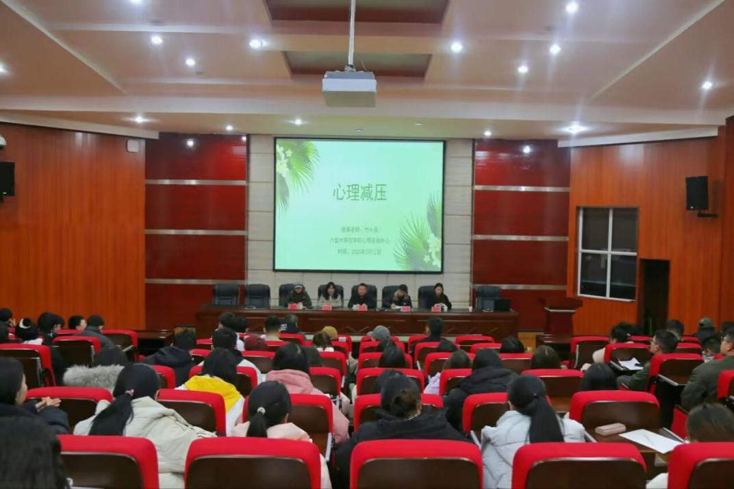 为帮助学生缓解学业压力,提升心理健康素养,3 月 12 日晚,土木与规划学院在博学楼知行讲堂举办 "心理减压" 主题讲座。学院党委书记陶勇、党委副书记刘海涛、学生科科长(团委书记)刘芳、城乡规划系教师杨沁桦及 2021 级、2022 级全体学生共同参与活动,六盘水市未成年心理成长中心专职心理咨询师付小庆担任主讲嘉宾。