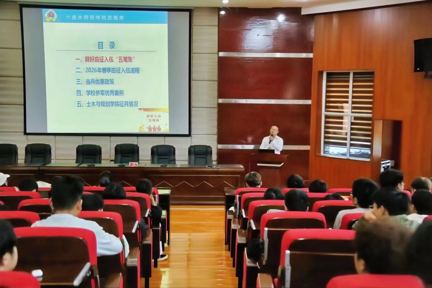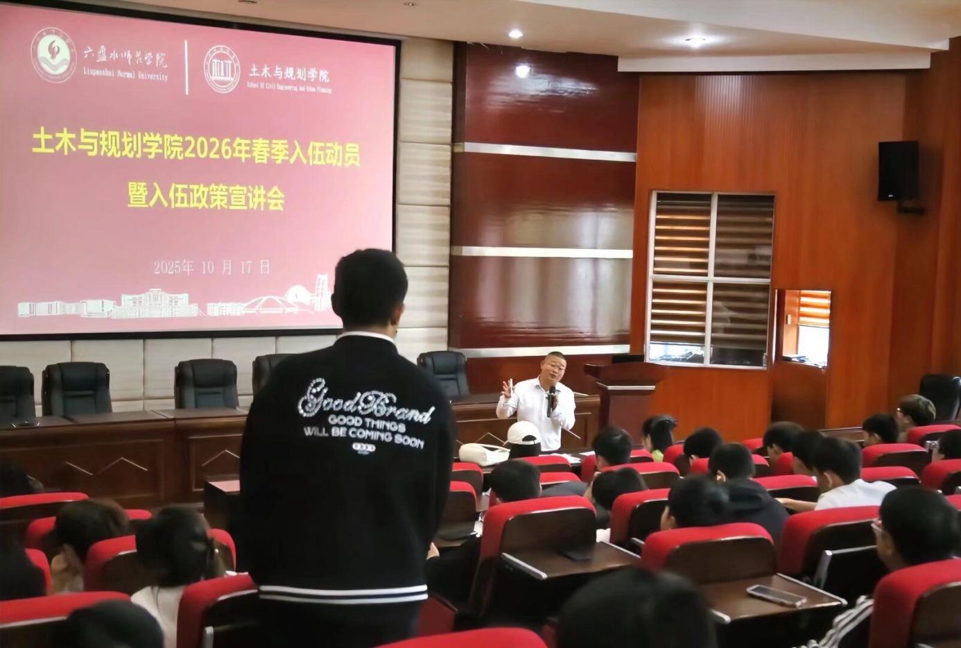 10月17日下午,我院在博学楼知行讲堂召开2026年春季征兵宣讲动员会,学校党委学生工作部(武装部)副部长匡其羽出席会议并作动员宣讲。通过政策解读、福利宣讲、互动答疑三大环节,他系统传递了征兵政策要点,深度激发了学生爱国参军的热情,取得了良好的宣传动员效果。会议由我院学生科(团委)科长(书记)刘芳主持,辅导员彭金凤、龚璐璐、马宇、柳林汐以及适龄青年学生参加了本次会议。