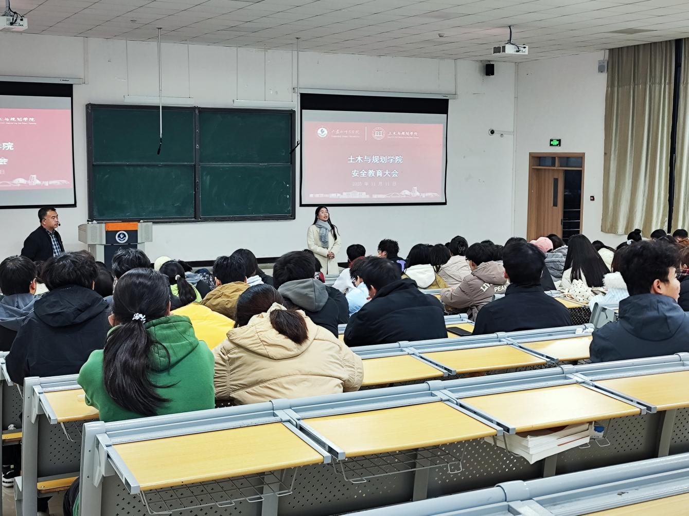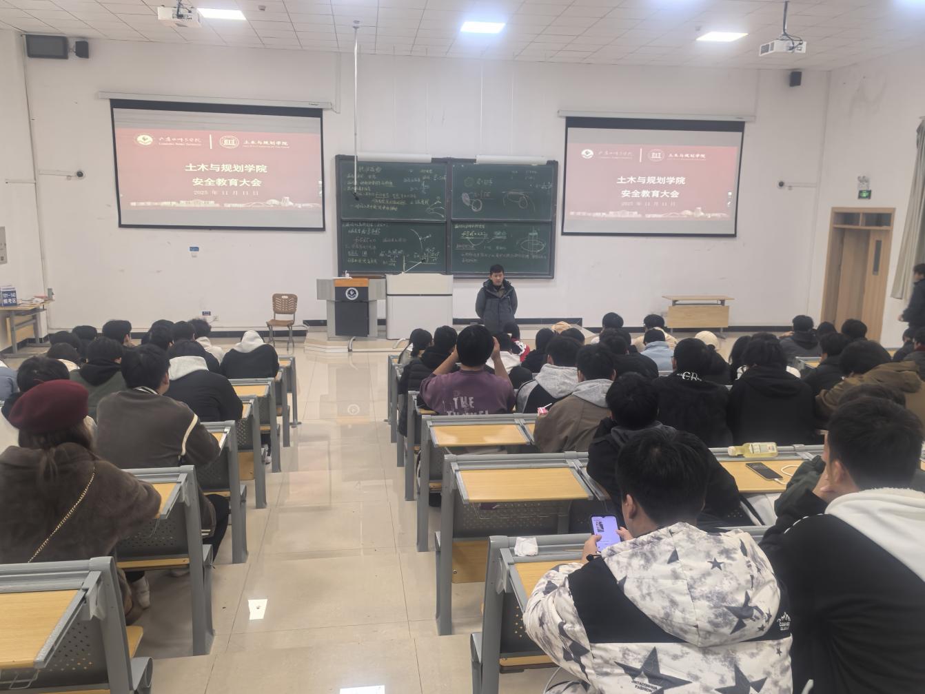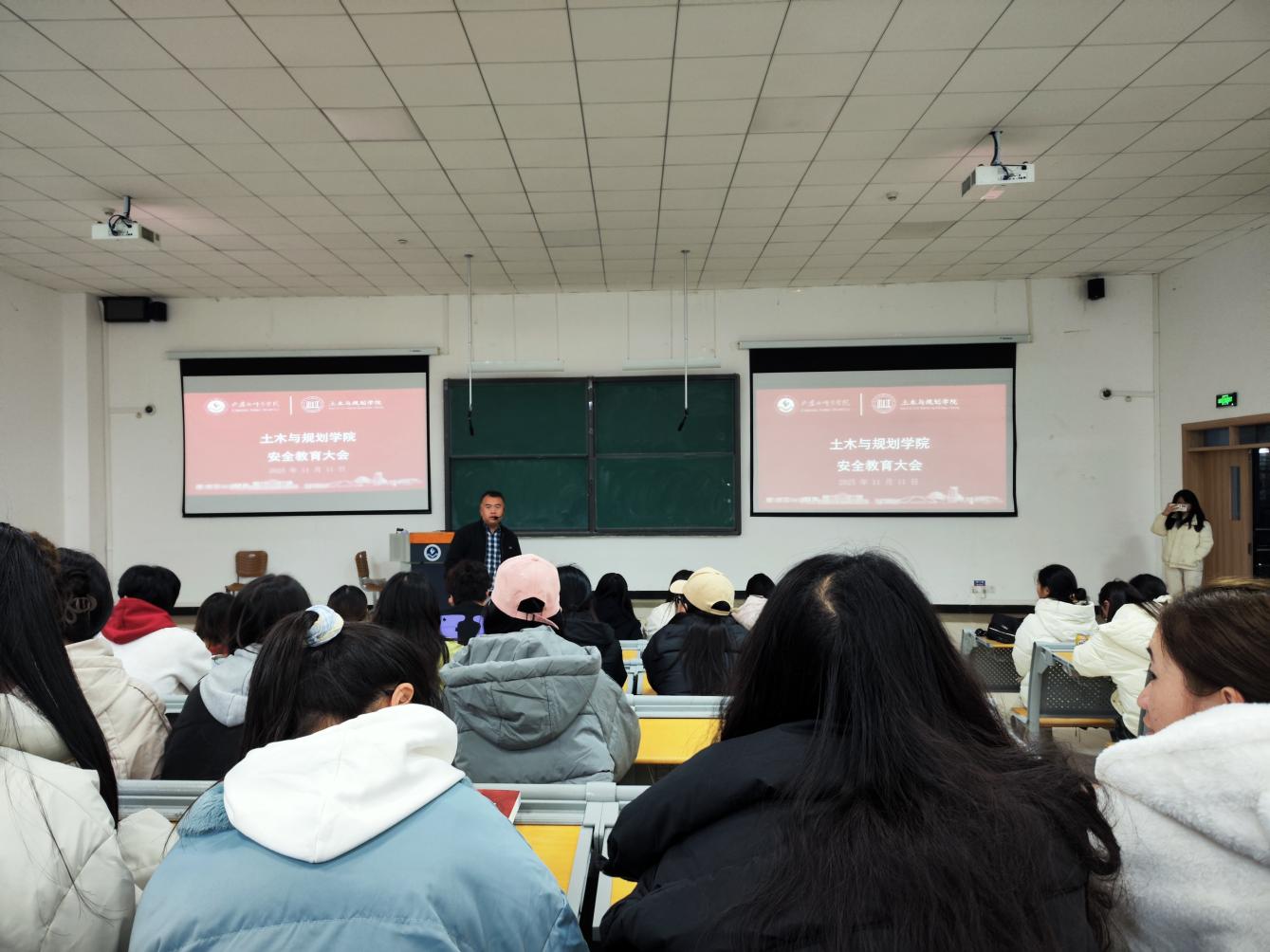 11月11日晚,土木与规划学院在勤学楼101、201、208教室举行安全教育大会。学院党委书记陶勇,副院长肖波,党委副书记刘海涛,城乡规划系副主任杨沁桦,学生科(团委)全体工作人员以及2021级城乡规划、2022级、2023级、2024级、2025级学生参加本次会议。