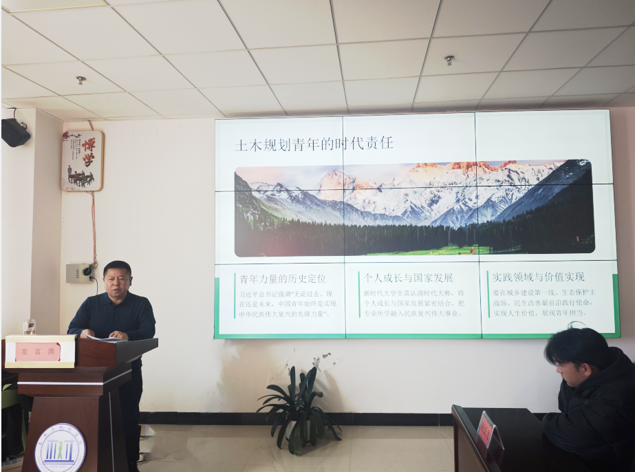 11月25日我院党委书记陶勇在学院第一会议室(奥学楼1107)为全院学生干部讲授题为“以青春之担当 筑时代之基业”的思政课,学生科(团委)科长(书记)刘芳主持,全院学生干部和班委参加。