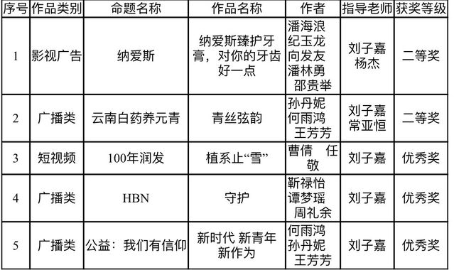 我院数字媒体艺术专业刘子嘉、杨杰、常亚恒老师指导的潘海浪团队作品《纳爱斯臻护牙膏对你的牙齿好一点》和孙丹妮团队作品《青丝弦韵》获全国二等奖;刘子嘉老师指导的曹倩团队作品《植系止“雪”》、靳禄怡团队作品《守护》、何雨鸿团队作品《新时代新青年新作为》获全国优秀奖。(供稿/刘子嘉 编辑校对/李兴永 审核/刘开盛)
