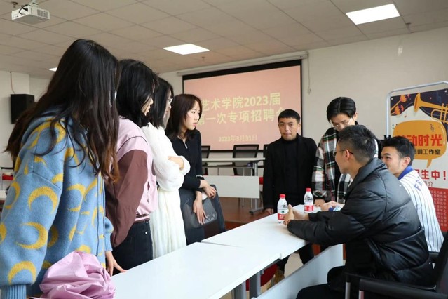 2023年3月31日,艺术学院在奥学楼201教室召开了2019届毕业生专项招聘会。本次招聘会采取供需见面、双向选择的方式,邀约达芬奇美术少儿美术培训班,鼓动时光乐器培训工作室,分贝琴行三家企业参会,提供全职和和兼职岗位30多个。