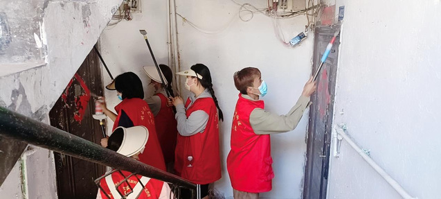 社区日益增多的广告宣传和随意张贴的小广告,致使钟山区黄土坡街道七十三社区环境风貌不佳。对此,志愿者们积极铲除小广告,手拿喷雾进行喷涂覆盖,开展环境卫生整治,改善社区群众居住环境。(供稿/靳薇 图片/周世敏 编辑校对/陈国风 审核/刘开盛)