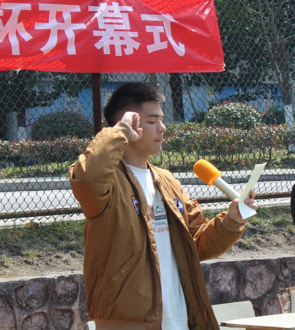 接着裁判员代表申有高讲话并宣誓,运动员代表姚海涛讲话并宣誓。最后,艺术学院学生科陆邹老师宣布本次艺术学院篮球“欢送杯”正式开始。
