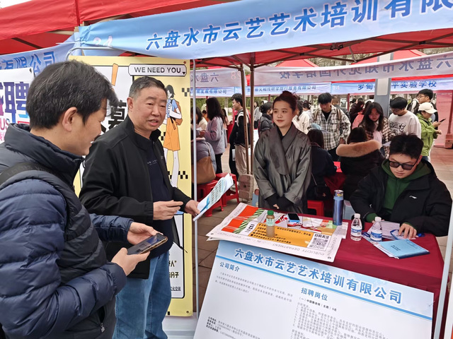 在访企过程中,学院领导重点走访了贵州趣凉都文旅运营科技有限公司、六盘水红山实验学校、六盘水市云艺艺术培训有限公司、六盘水九思树人高级中学等4家优质企业,针对就业岗位、企业发展进行了深入交流。各家公司招聘负责人详细介绍了企业概况、人才需求等情况,希望学院优秀人才到企业就业。崔有昌院长向各家企业介绍了学院的专业设置、产教融合、学生就业等情况,希望与现场企业加强合作。同时,学院毕业生与企业沟通交流,积极投递简历,学院老师也为大家开展就业指导服务,帮助学生树立正确的就业观念,提高就业竞争力和综合素质。