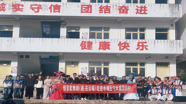 捐赠仪式结束后,艺术学院的师生为营田小学师生和营田村村民献上了精彩纷呈的文艺表演,节选自情景歌舞剧《路,在云端》的《苗族芦笙舞》《心中的桥》《高速平原》《布依铜鼓舞》《新征程上铸辉煌》等原创节目,生动诠释了高校与地方携手并肩、共同助力乡村振兴的坚定信念与美好愿景,赢得了现场师生和广大村民的热烈掌声和情感共鸣。