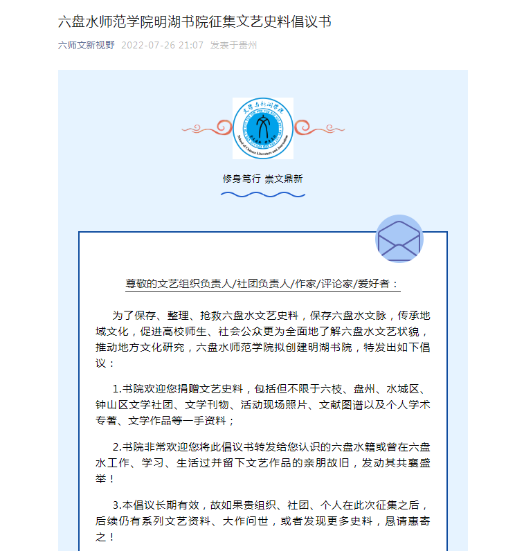 中国凉都文化创新研究中心充分发挥省级“人文社科示范基地”作用,在学校官网、官方微信平台、官方抖音号等宣传师生文化创新与研究成果,同
