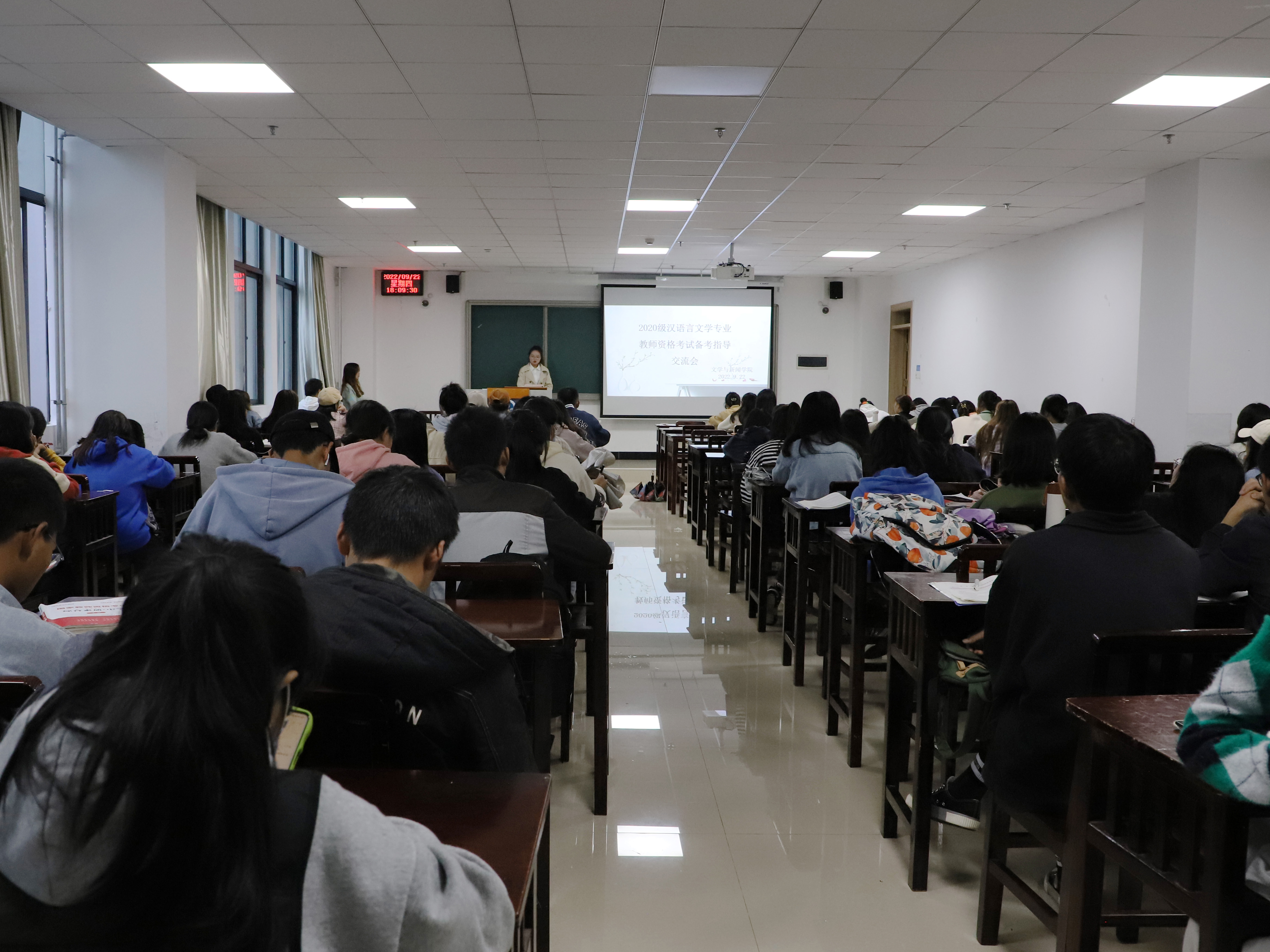9月22日晚,文学与新闻学院2020级汉语言文学专业教师资格考试备考指导交流会在奥学楼307召开。学院主持行政工作的副院长许兴阳出席会议。2019级汉语言文学专业一班王微、钟小琳、崔丽玮到场分享备考经验。