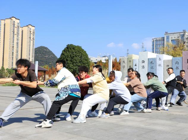 11月6日,文学与新闻学院在知行广场举行2022-2023学年“迎新杯”拔河比赛。学院办公室负责人邹璇,学院学生科(团委)副科长(副书记)王可凡,辅导员何亮、王雪雪、杨杰,教师廖小欢出席比赛开幕式。