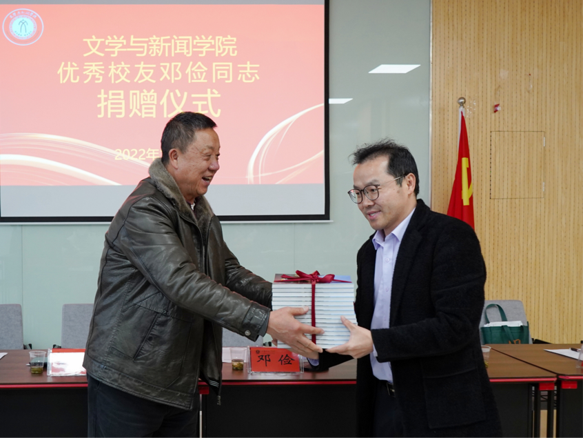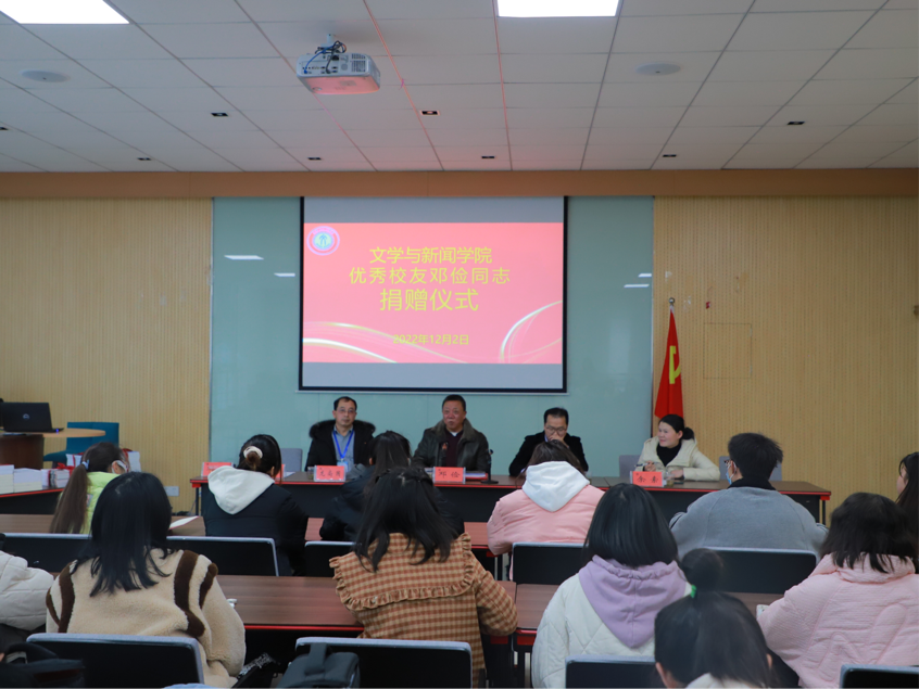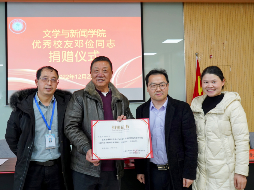 12月2日下午,《六盘水日报》社原副总编辑、广东《珠江商报》原副总编辑,暨南大学新闻与传播学院兼职教授,bat365在线中国登录入口优秀校友、高级记者邓俭先生作品捐赠仪式在经纬图书馆二楼举行。副院长许兴阳教授,院长助理、新闻学系主任余索副教授出席。学院党委书记龙尚国担任主持人。