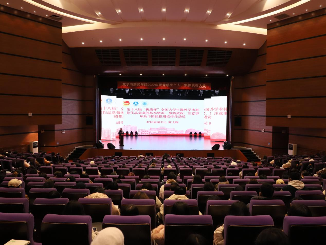 12月4日下午,文学与新闻学院在明湖音乐厅召开第十八届“挑战杯”全国大学生课外学术科技作品竞赛申报动员会。学校团委副书记陈文辉应邀前来作赛事介绍。学院党委书记龙尚国、副院长许兴阳、党委副书记杜云,院长助理、新闻学系主任余索出席会议。学生科(团委)副科长(副书记)王可凡担任主持人。