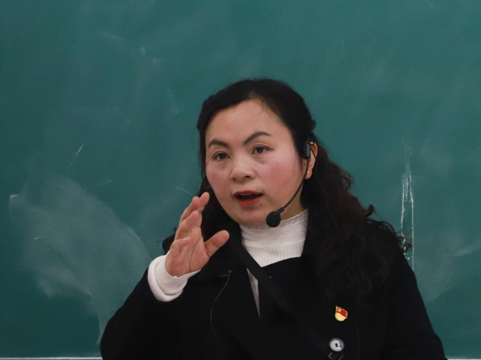 赵泽艳以“语文是什么”为切入点,讲述语文应是学科、一种能力、一种文化传承、一种综合素养,教师要敬畏三尺讲台、热爱语文,用情怀学好语文,结合“先学后教,以学定教”的教育理念进行教学。