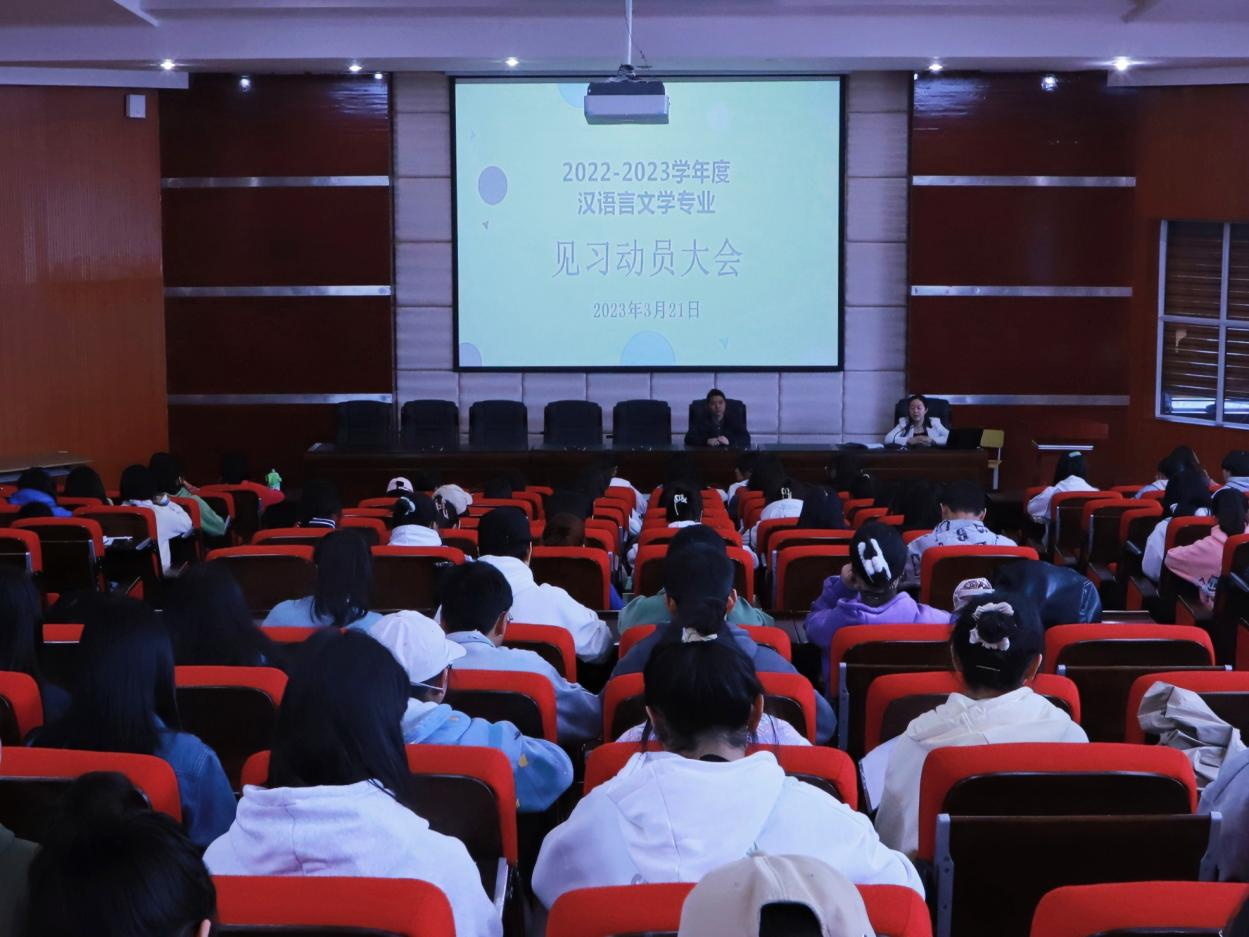 3月21日中午,在博学楼117知行讲堂,文学与新闻学院召开汉语言文学专业见习动员大会。学院党委副书记杜云出席会议,汉语言文学专业系主任卫佳副教授主持。
