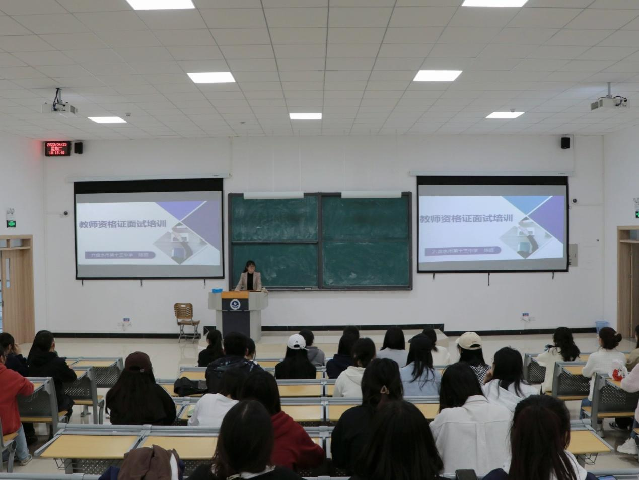 4月25日晚,文学与新闻学院在勤学楼311开展教师资格证面试指导培训。六盘水市第十三中学高级教师陈丽担任主讲人。学院党委书记龙尚国出席,汉语言文学专业系主任卫佳主持。